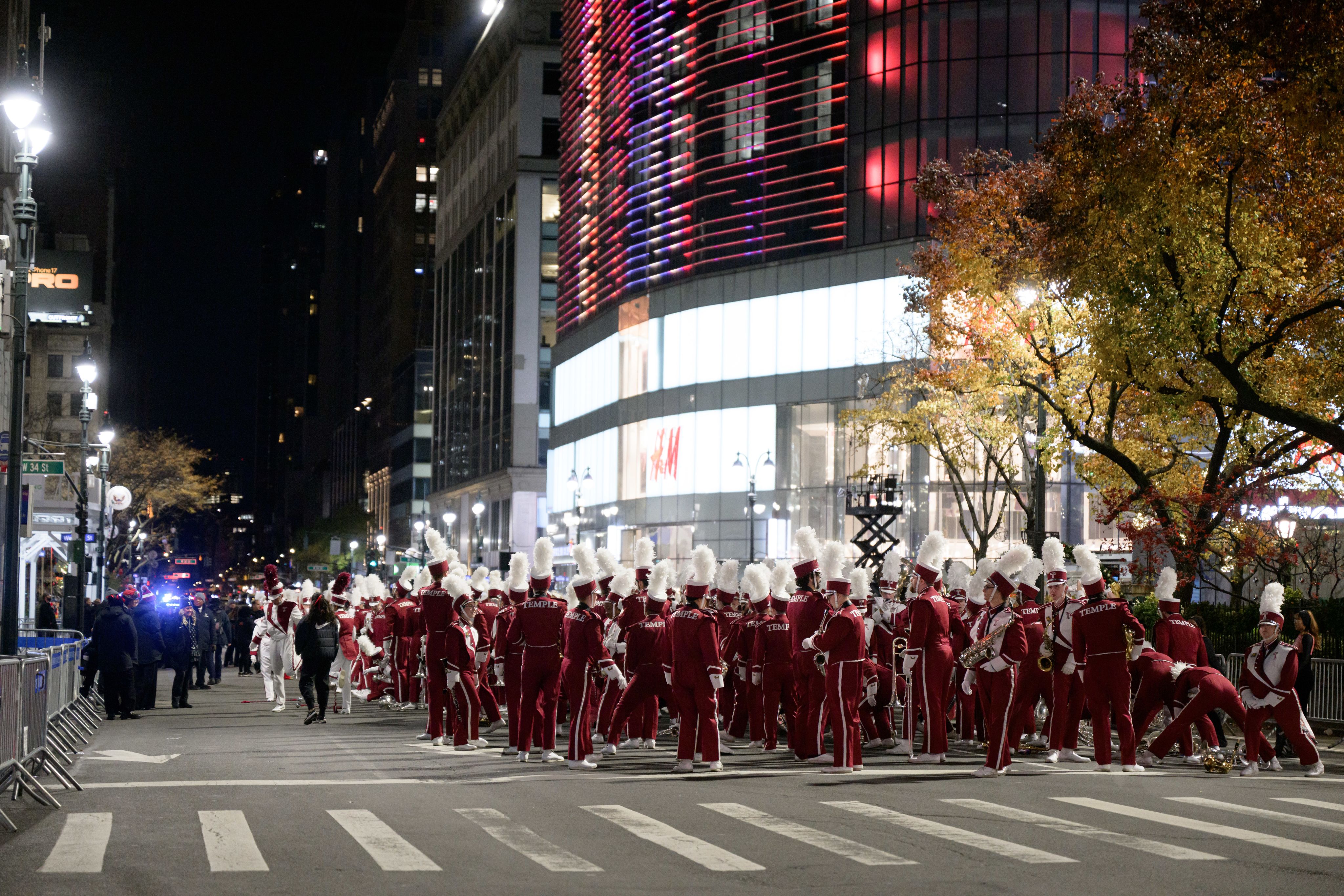 Thanksgiving Day began with a 2:50 a.m. call time and 3:20 a.m. rehearsal for the band to practice marching into the performance area, the iconic star in front of Macy’s Herald Square store, and running through the routine.