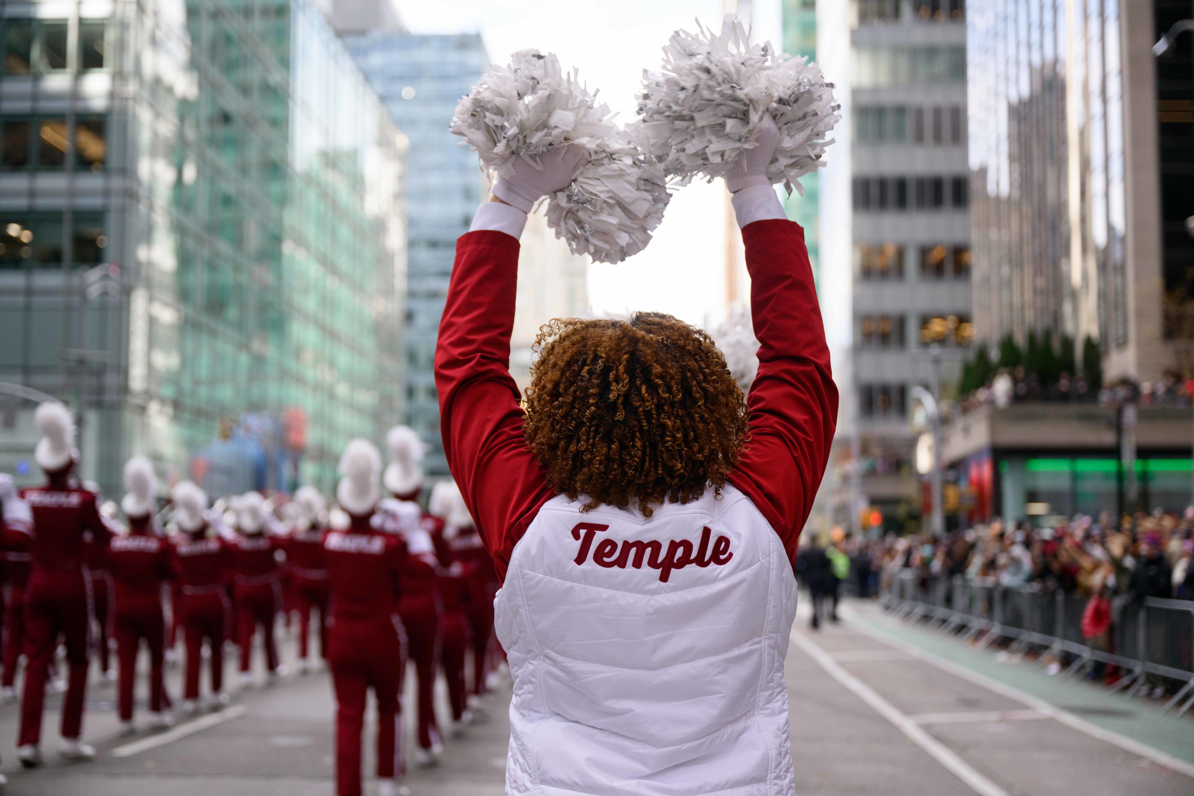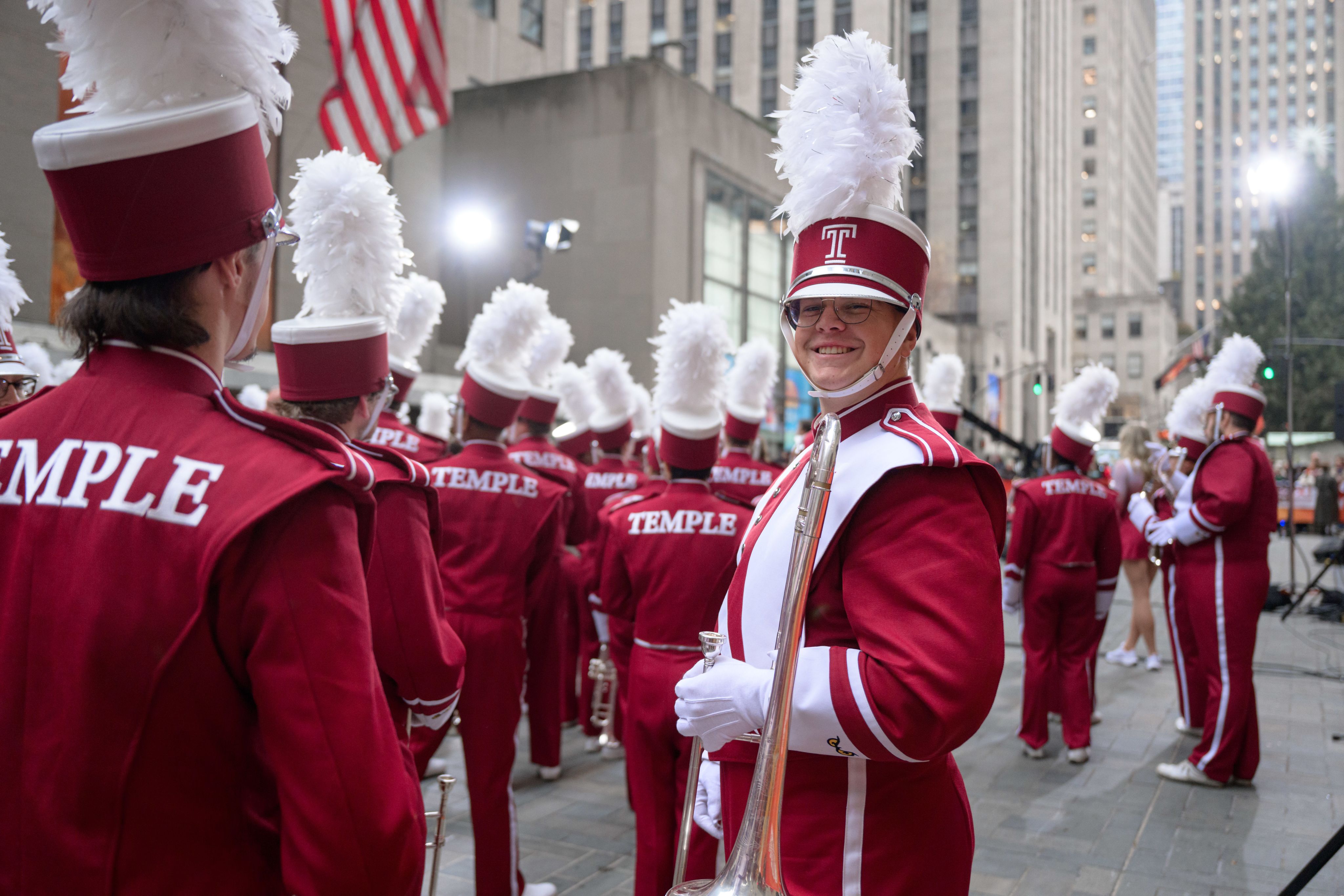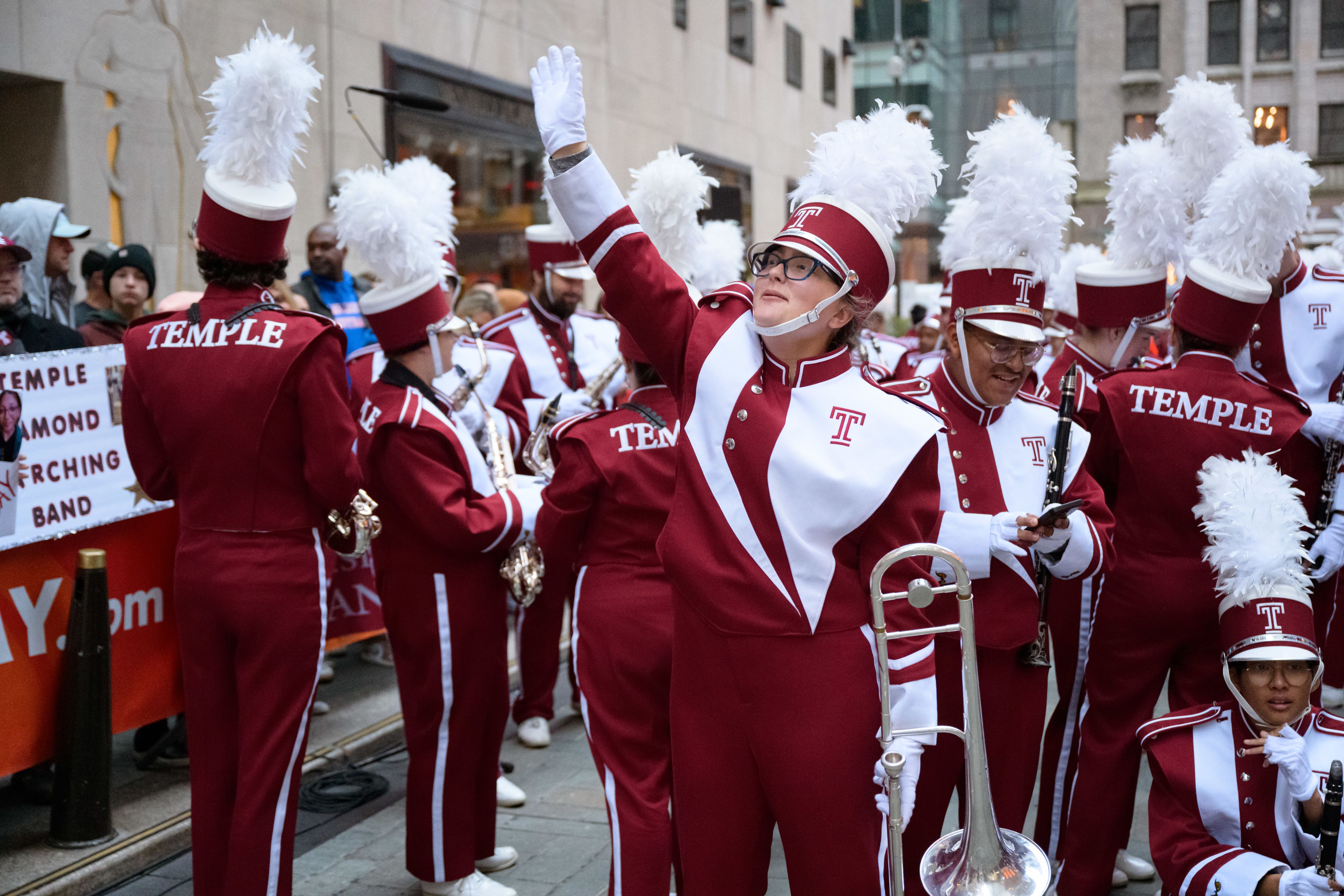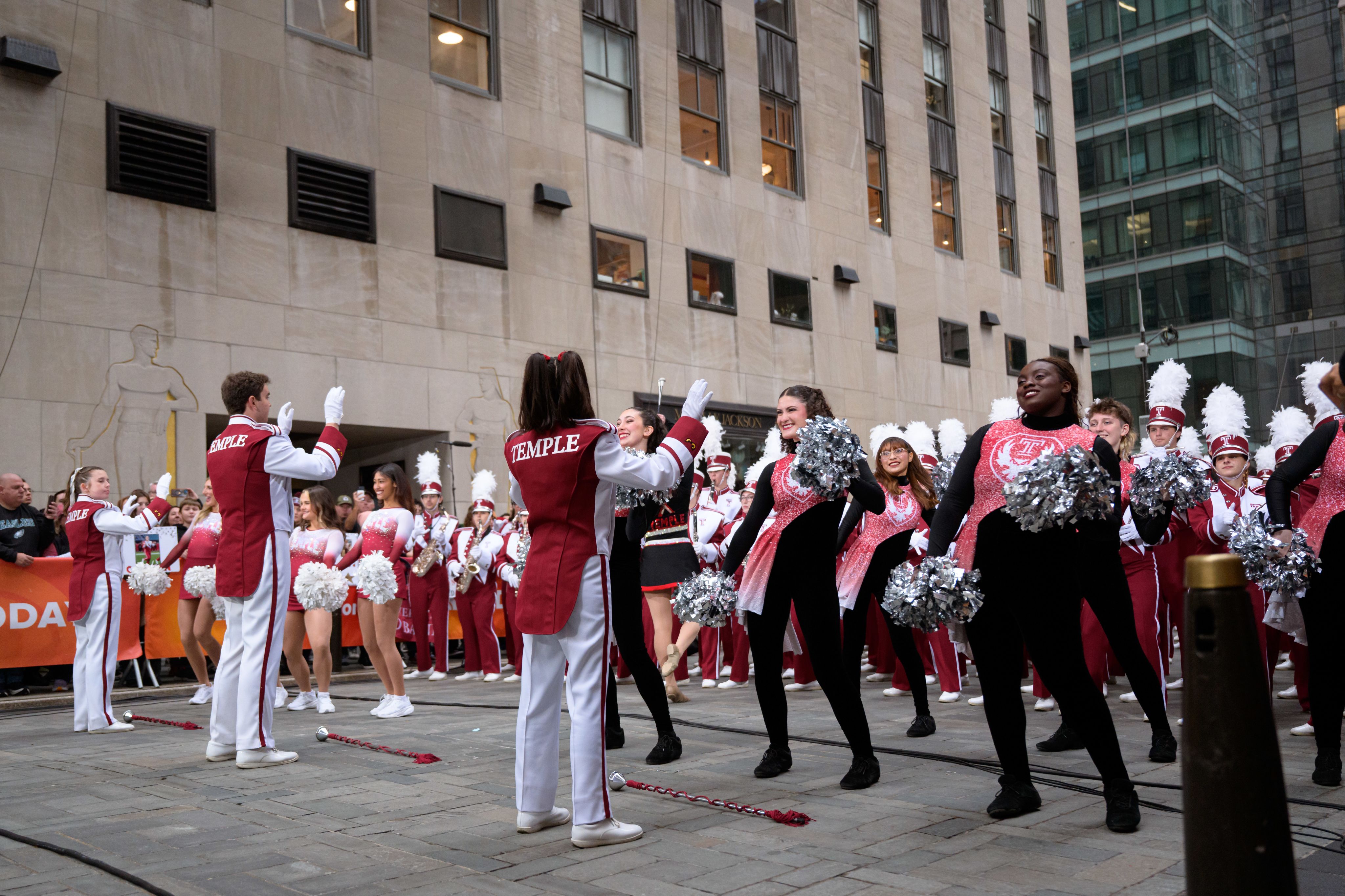 Temple Owls brought Cherry and White energy to New York City as the only band representing Pennsylvania, marking a historic milestone during the Diamond Marching Band’s 100th anniversary year, which included an appearance on The Today Show.