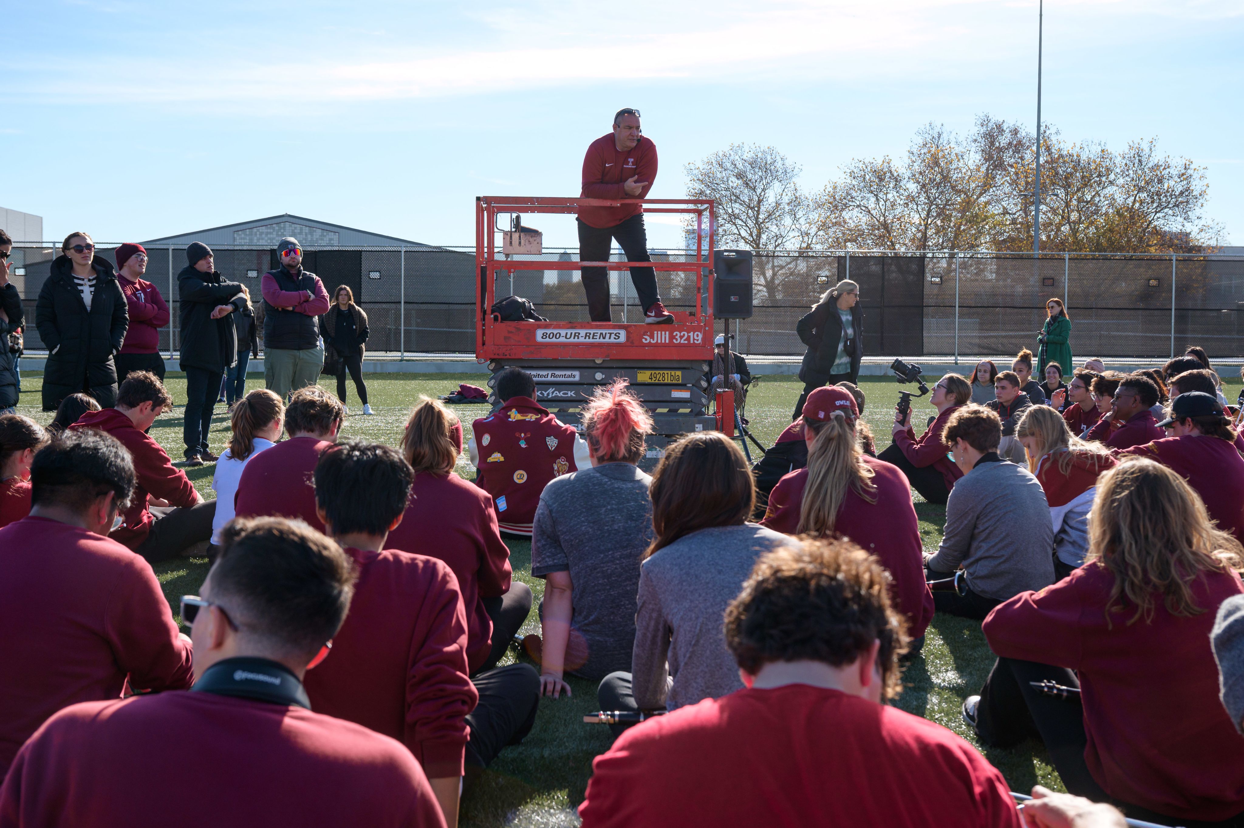 Along the route, the band performed Golden from KPop Demon Hunters, Friends in Low Places, Jingle Bell Rock and Temple songs such as Go Owls and Fight Temple Fight.